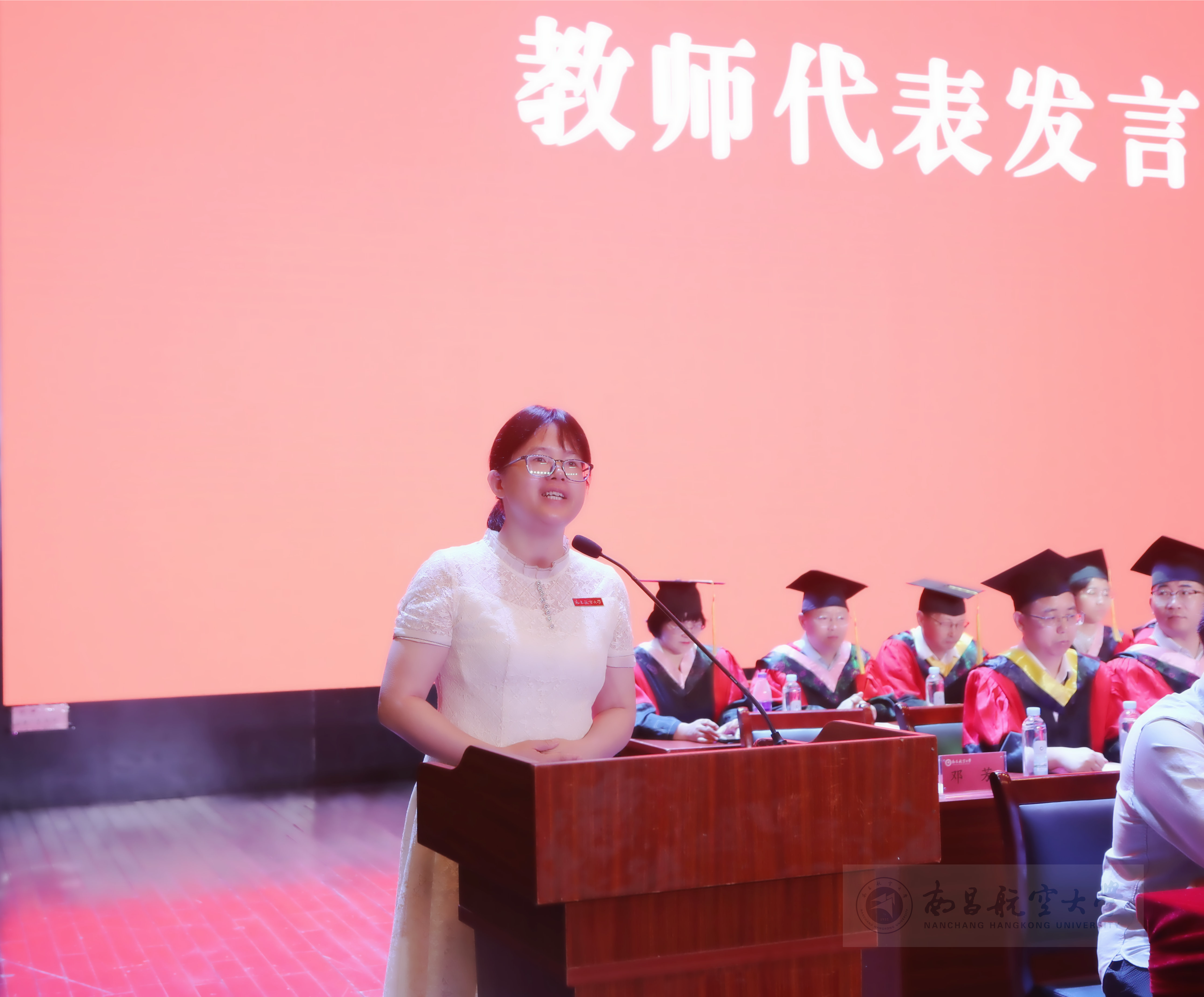 全国模范教师、江西省主要学科学术带头人领军人才、江西省杰出青年人才、江西省巾帼建功标兵、环境与化学工程学院邓芳教授作为教师代表发言。她希望毕业生们保持学习的热情,坚守初心、追逐梦想,勇于担当、积极奉献,保持乐观积极的心态,在未来的人生道路上乘风破浪、勇往直前,书写属于自己的精彩篇章!