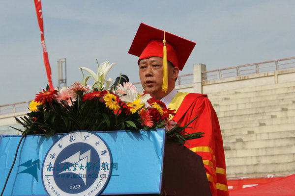 “航空报国”的理想,我们都应坚持。你们是昌航的学子,“航空报国”的理念给了你们不断前行的力量,这种力量源自六十多年来一代代昌航人的辛勤耕耘和无私奉献。让我们共同铭记:唯有将祖国的富强与人类的进步当做己任的拼搏才是辉煌的,无论在任何时候,也不管世界发生什么,都不能动摇我们爱国、爱党、敬业、忠诚的意志!