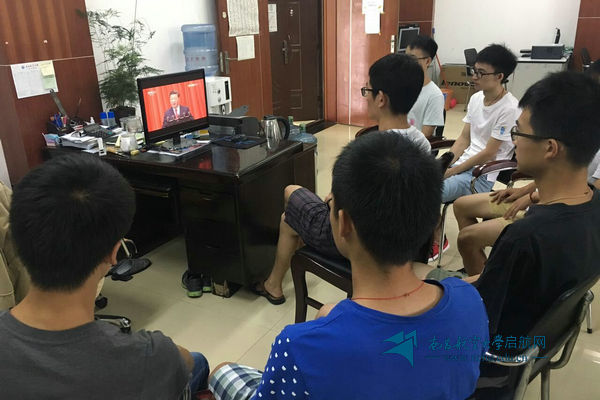 收看建军90周年大会实况大活和实验室会场(图/学工部、团委)