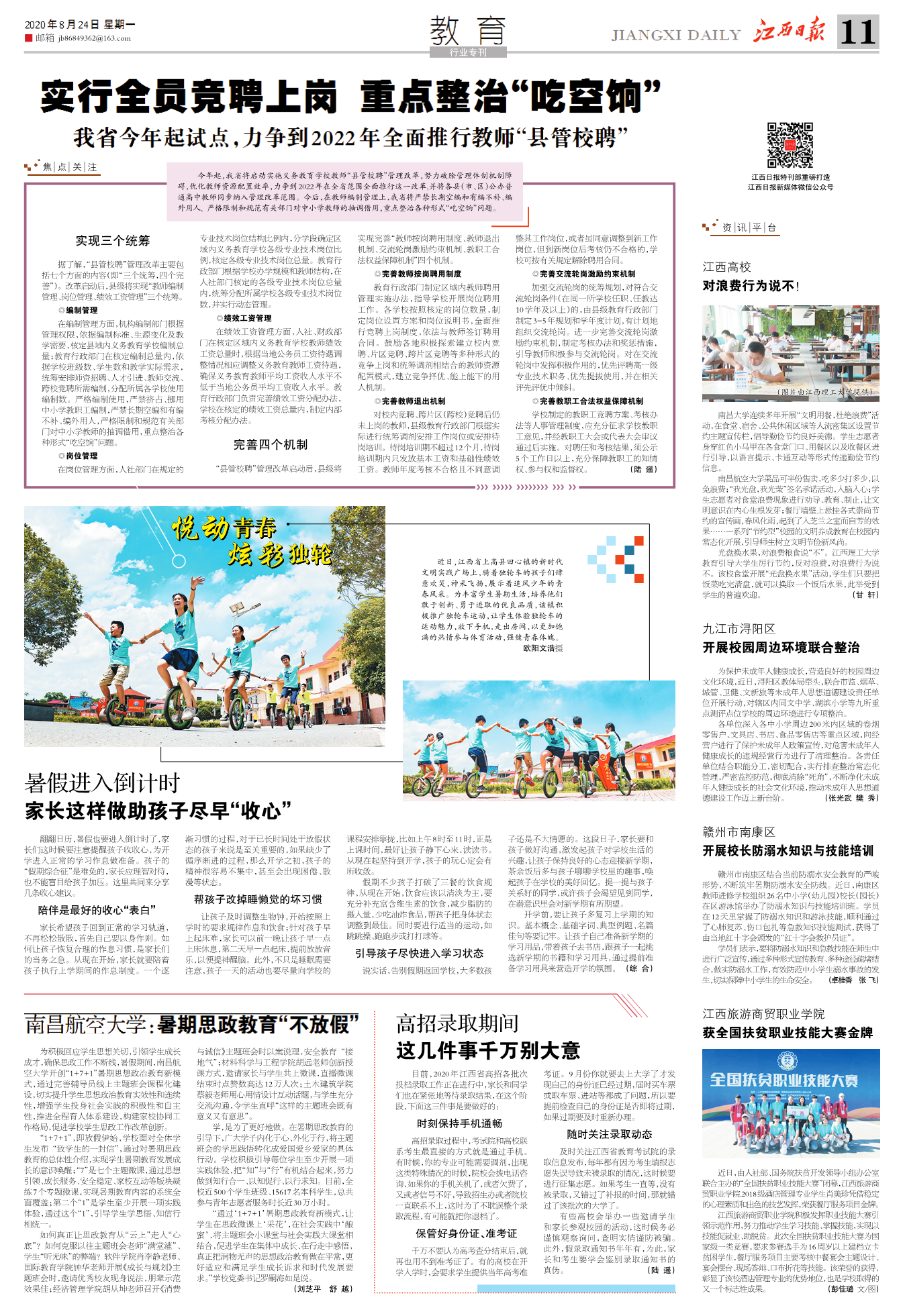 《江西日报》11版教育:南昌航空大学:暑期思政教育“不放假” 来源: 发布时间:2020-08-26 15:50:58 浏览次数: 次 【字体:小 大】 启航网讯 8月24日,《江西日报》11版教育报道我校暑期思政教育“不放假”助力学生成长的消息。媒体链接:http://epaper.jxwmw.cn/html/2020-08/24/content_5413_3177852.htm 【打印正文】