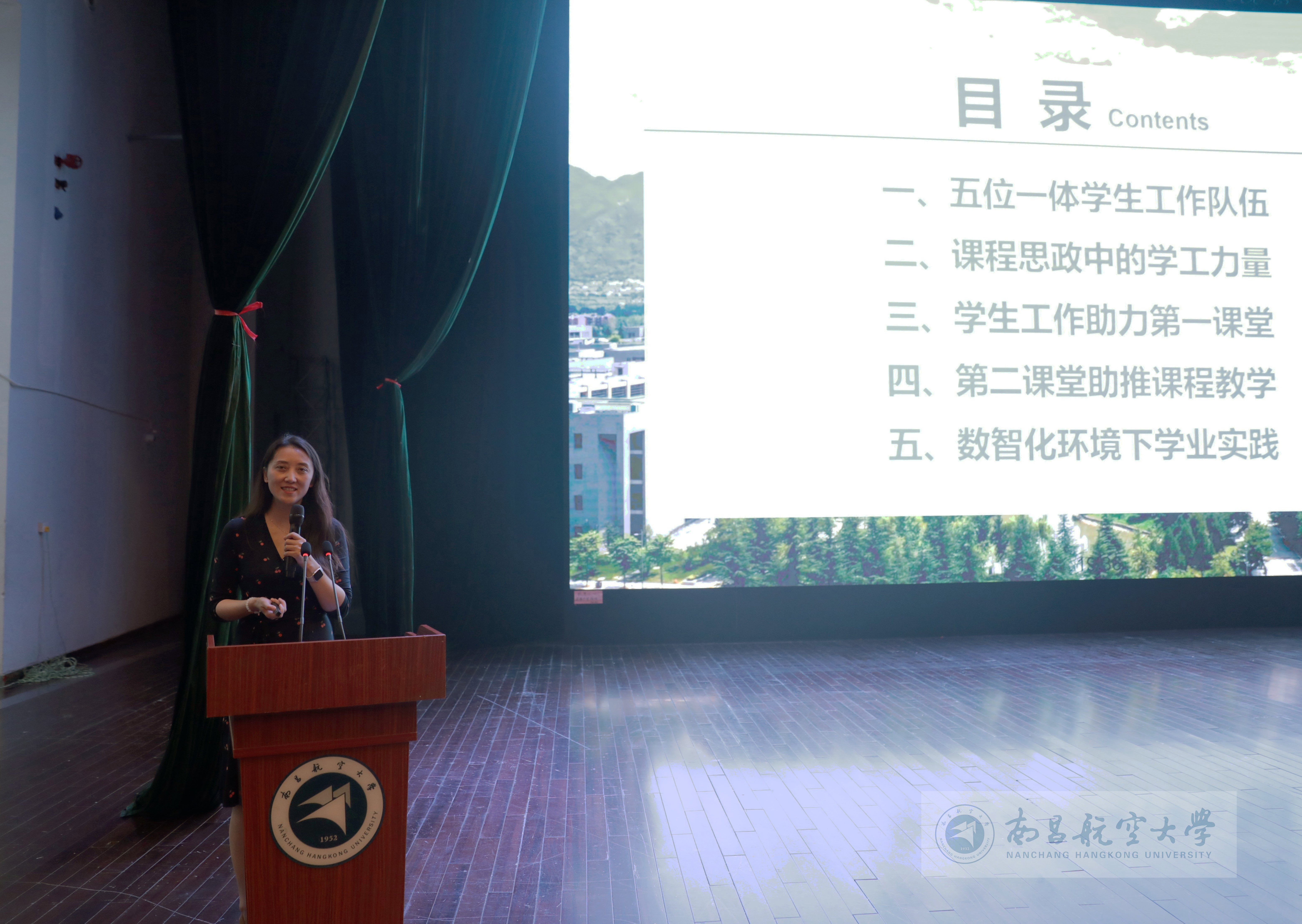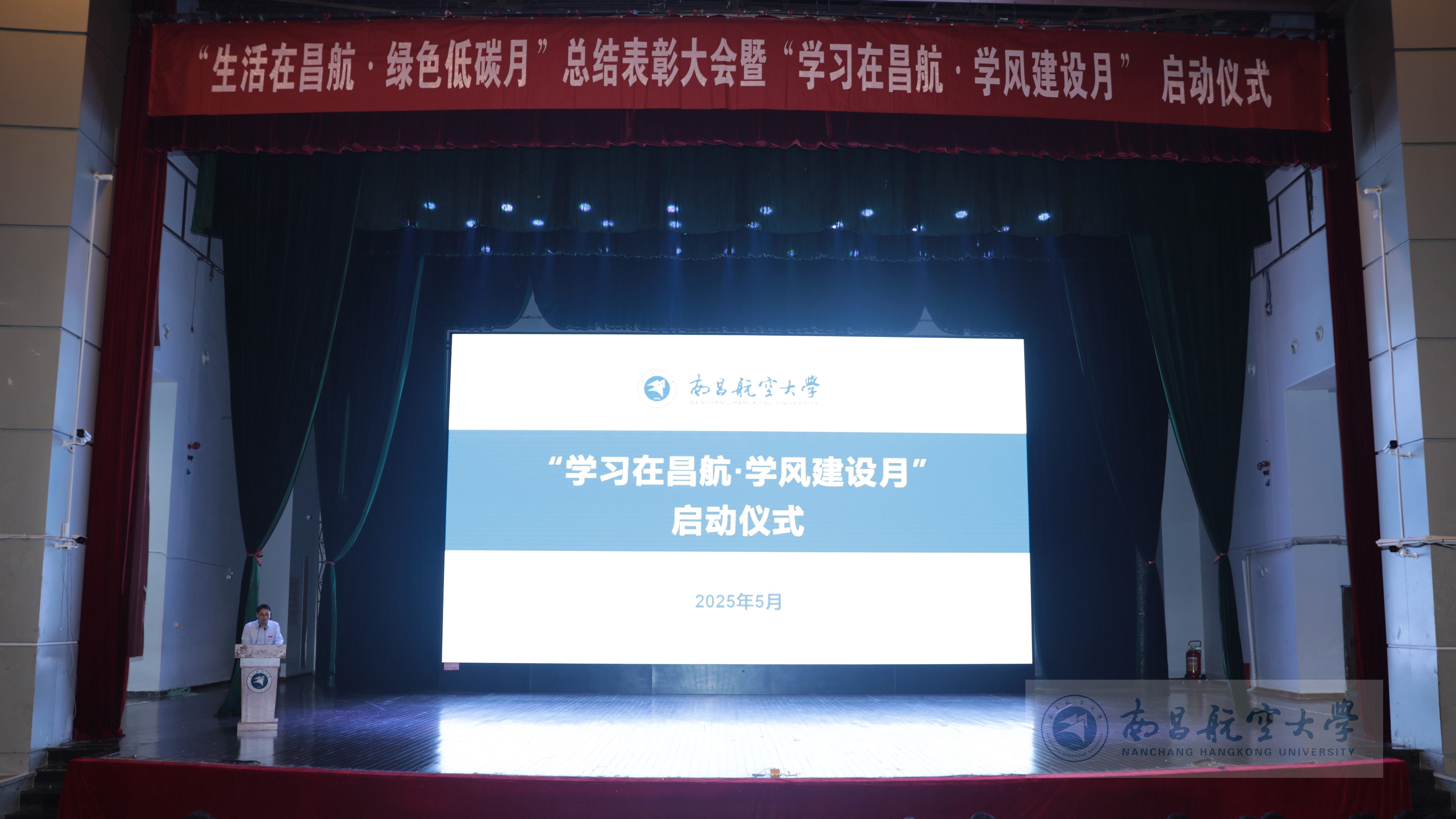 启航网讯 5月15日下午,学校在大学生活动中心礼堂举办“生活在昌航·绿色低碳月”总结表彰大会暨“学习在昌航·学风建设月”启动仪式。党委常委、副校长江光亮出席活动并颁奖,西北工业大学数学与统计学院博士生导师、党委副书记张莹教授应邀作专题报告。相关职能部门主要负责人,各学院党委书记、党委副书记、辅导员、班主任和学生代表共计千余人参加。