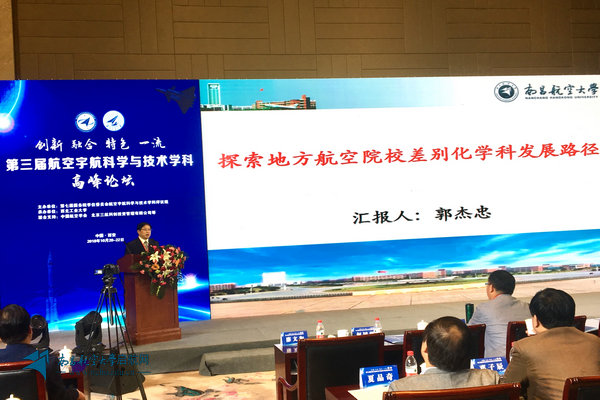 郭杰忠作题为“探索地方航空院校差别化学科发展路径”的大会交流报告