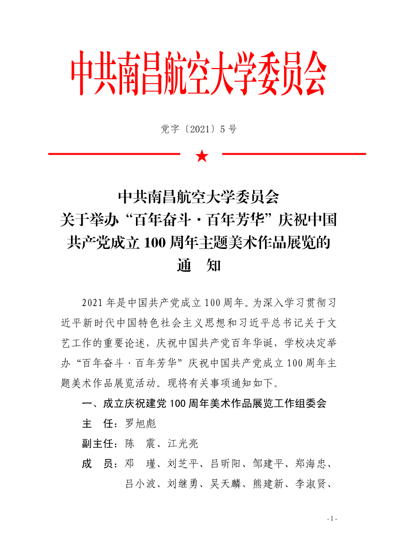 关于举办“百年奋斗·百年芳华”庆祝中国共产党成立100周年主题美术作品展览的通知