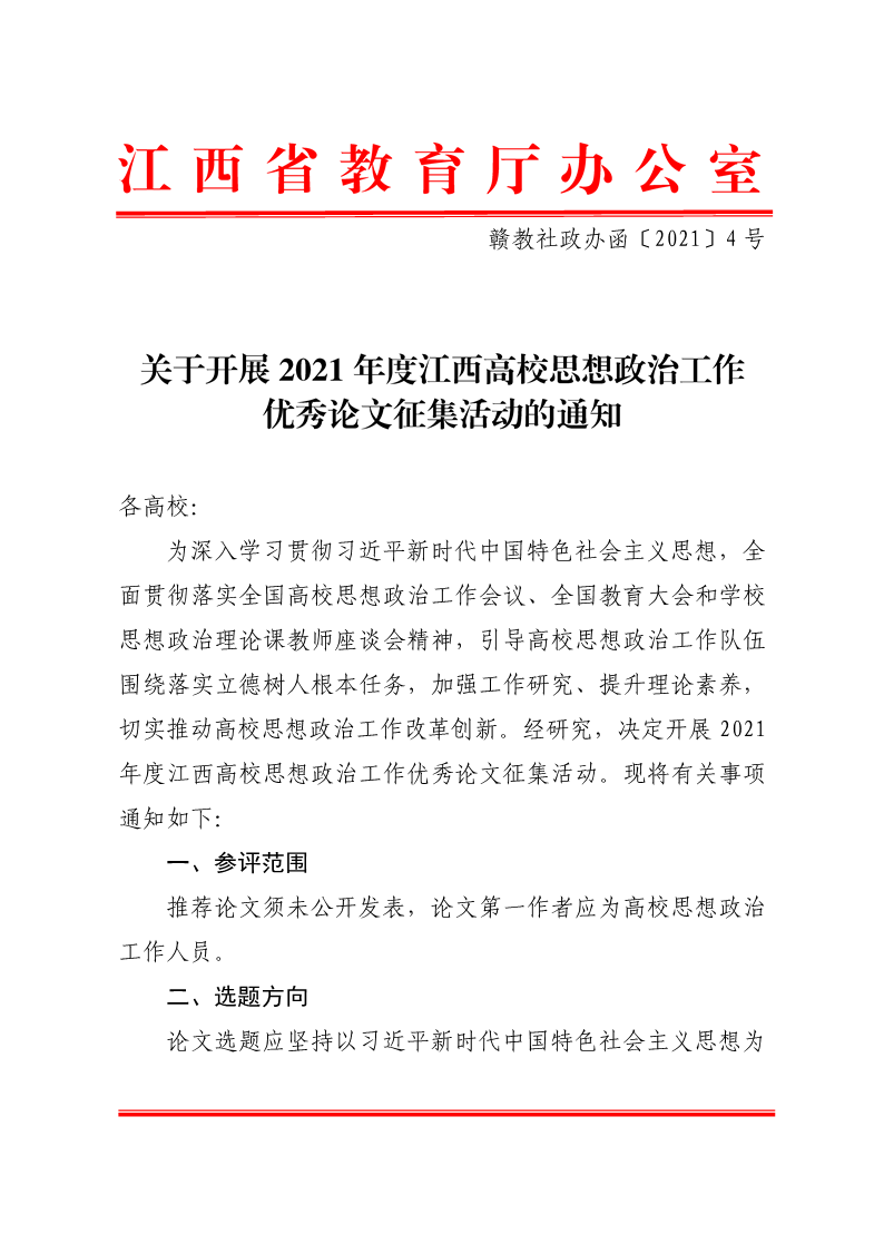 【党史学习教育】关于开展2021年度江西高校思想政治工作优秀论文征集活动的通知