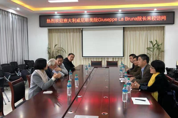 副校长杨晓光教授对Giuseppe La Bruna院长一行的到来表示热烈欢迎,并与客人一同回顾意大利在文艺复兴时期的辉煌,分享了意大利威尼斯美院以及Giuseppe La Bruna院长本人在艺术上的成就;共同探讨两校在艺术类教师培训与交流、学生本升硕、学生短期交流、共同举办艺术展、意大利语培训等方面的合作模式。