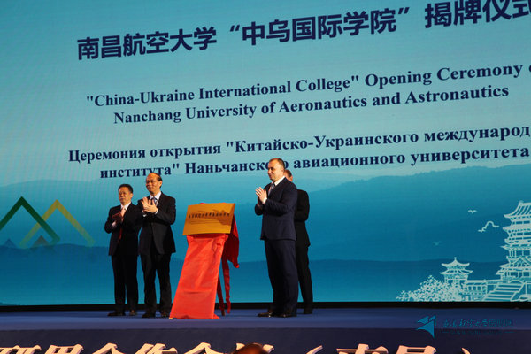 开幕式上,罗曼·格列巴、吴晓军、乌克兰哈尔科夫国立航空航天大学校长聂琦波卢克·尼古拉及我校校长罗胜联共同为南昌航空大学“中乌国际学院”揭牌。罗胜联代表学校分别与乌克兰国立航空大学、乌克兰哈尔科夫国立航空航天大学、江西洪都航空工业集团有限责任公司签署合作协议。南昌大学分别与乌克兰、俄罗斯等高校签署合作协议。教育部学校规划建设发展中心主任陈锋主持揭牌和签约仪式。