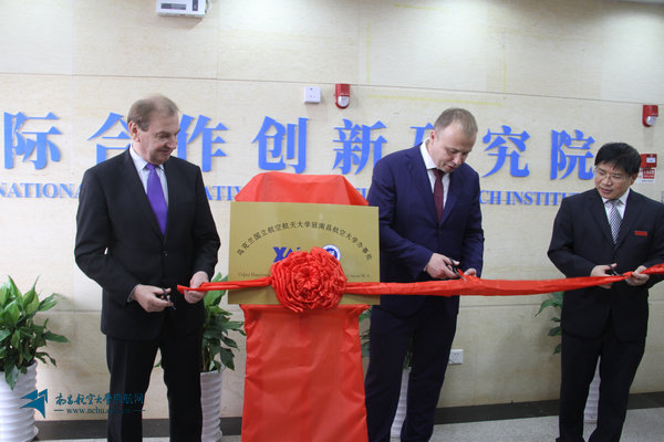 罗曼·格列巴、聂琦波卢克·尼古拉和郭杰忠共同为乌克兰哈尔科夫国立航空航天大学驻南昌航空大学办事处剪彩