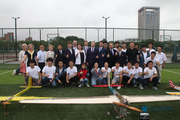 座谈会后,宾客一行在足球场观看了由学校航模队带来的航模表演,精彩的表现赢得了现场阵阵掌声。乌克兰驻华大使馆一等秘书西多连科·弗拉基米尔在观看后表示:“今天的航模表演非常棒、非常有趣。这些航模飞机结构融入了现代技术,可见南昌航空大学学生为了这些‘作品’倾注了大量心血。南昌航空大学的未来发展广阔,中乌合作互利共赢、前景无限。”